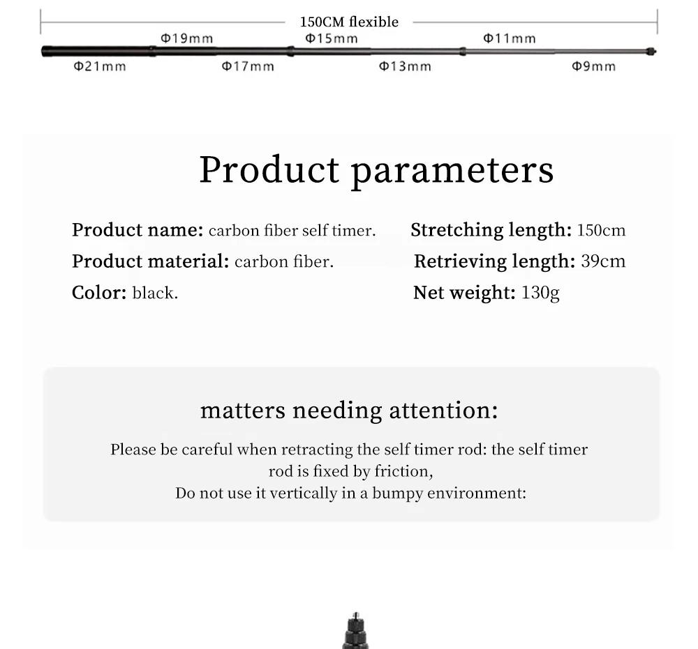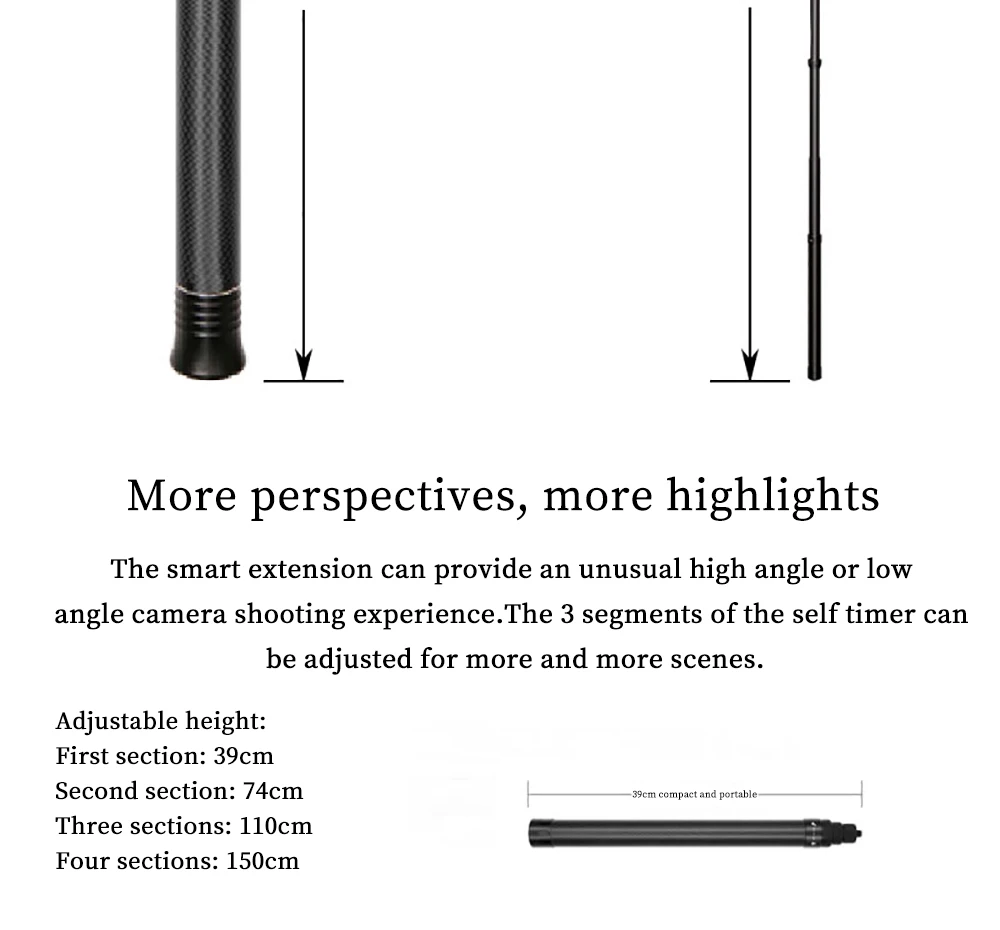 Product name: For Action Sports Camera Carbon Fiber Selfie Stick